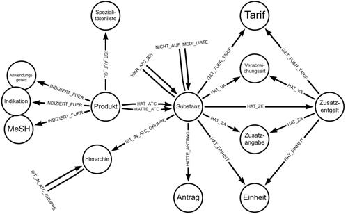 Die Anzahl hochteurer Medikamente ist in den vergangenen Jahren deutlich gestiegen. Dabei ist es herausfordernd, ähnliche Indikationen für unterschiedliche Substanzen und die Verbindungen zwischen den Medikamenten im Überblick zu behalten. Besonders Graph-Datenbanken sind geeignet, um genau solche Relationen abzubilden. Mit Hilfe von Neo4j sollte ein Graph-Datenmodell erstellt werden. Die Daten stammen von der SwissDRG AG, der Spezialitätenliste (SL) des BAG, dem ATC-Index der WHO, der Europäischen Arzneimittelagentur sowie den strukturierten Arzneimittelinformationen der Stiftung Refdata. Dabei sollte es möglich sein, die öffentlichen Daten monatlich zu aktualisieren und bei Bedarf weitere Informationsquellen zu integrieren.